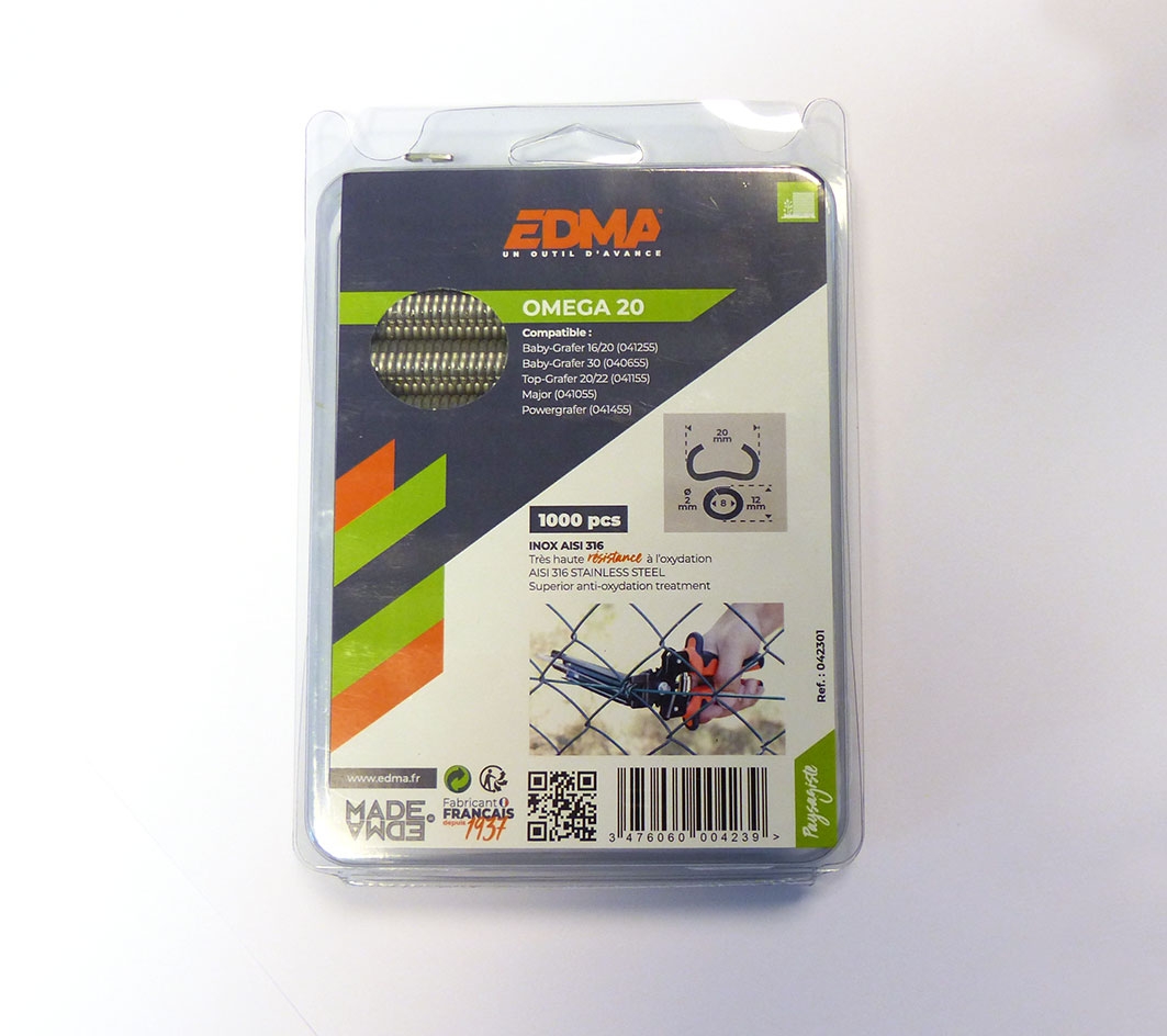 Les Agrafes Omega 20 s'utilisent avec notre agrafeuse manuelle avec chargeur (réf. 90AG01) (non fournie)