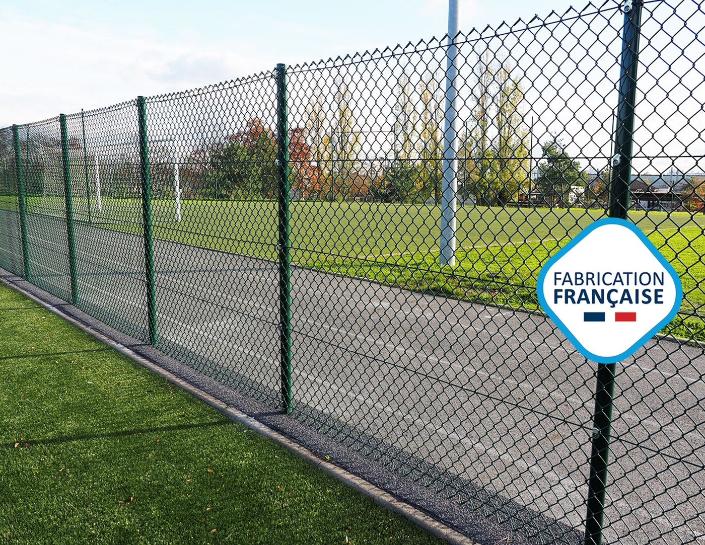 Clôture composée de poteaux et jambes de force ø 60 mm assemblés par brides. Remplissage grillage simple torsion galvanisé, thermolaqué. La fixation "CLOMO TECH " orientable et très résistante permet d'adapter la clôture à toutes les configurations de terrain.