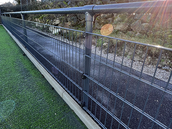 Panneau double fils en treillis soudés avec fils galvanisés selon NORME 10244-2 Classe D et plastifiés. Panneau renforcé par des doubles fils horizontaux (Ø 6mm ou 8mm) donnant ainsi sa très grande rigidité à la clôture.