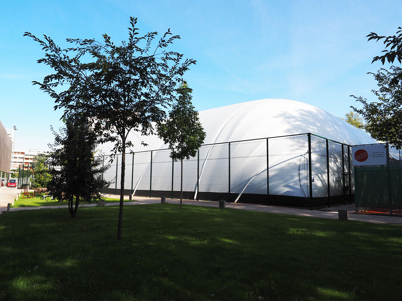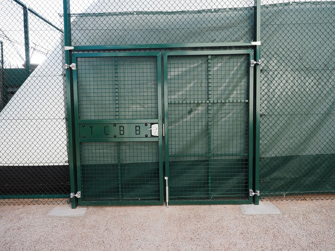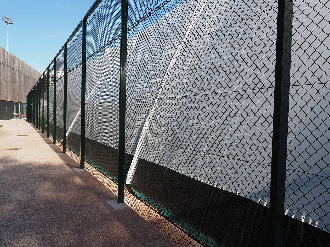 Réfection des courts en terre battue du club de tennis de Boulogne avec la conception et réalisation d'une clôture phériphérique CLOMO FRANCE, d'une hauteur de 4 m et de section rectangulaire, avec portes 2 battants sur linéaire aux initiales du cub. Courts recouvables l'hiver et découvrables l'été pour une utilisation optimale tout au long de l'année.